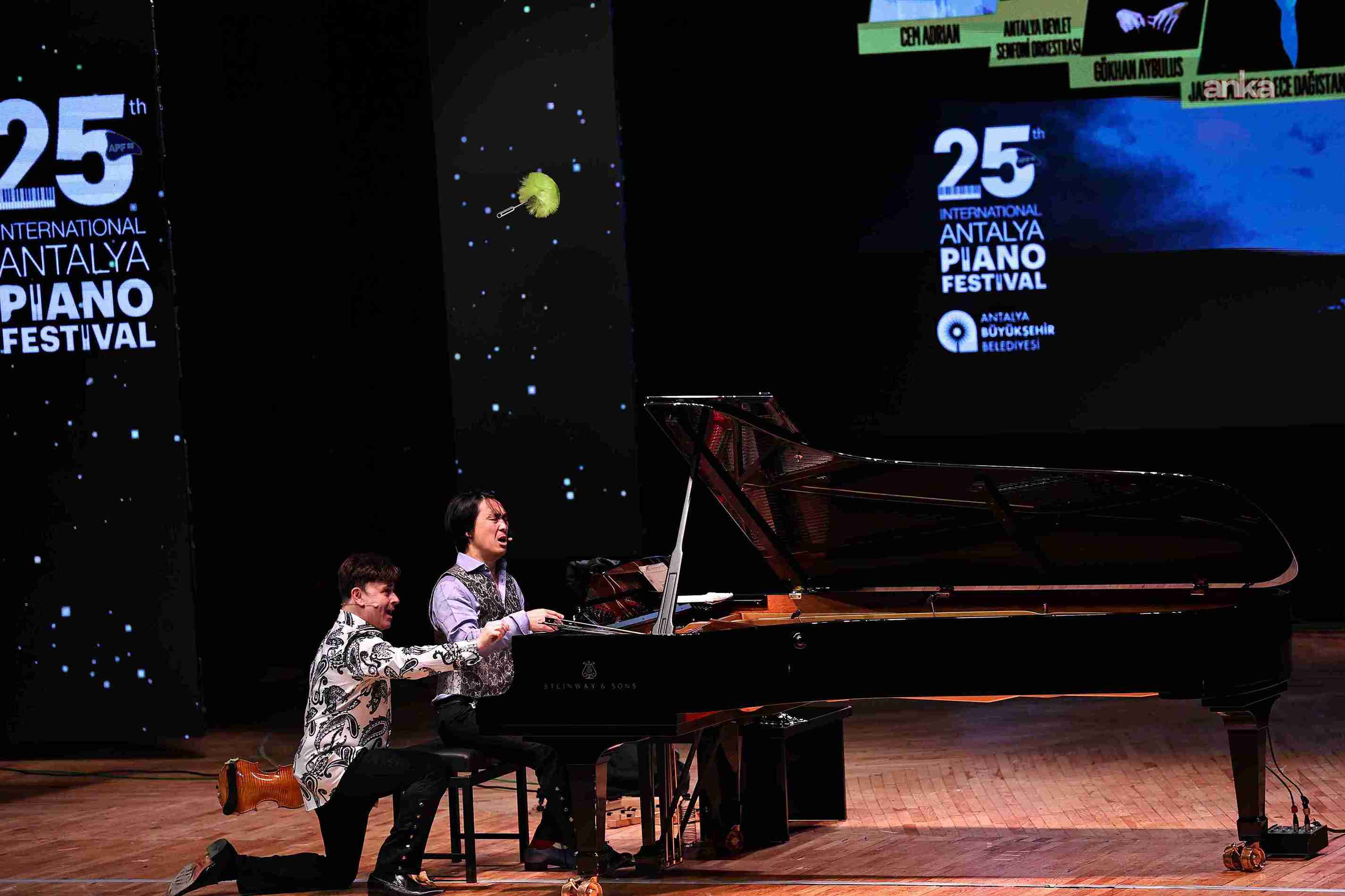 25. Uluslararası Antalya Piyano Festivali’nin kapanış konseri, Atatürk Kültür Merkezi (AKM) Aspendos Salonu’nda yapıldı. Festivalin son gününde keman virtüözü ve besteci Aleksey Igudesman ile piyanist ve besteci Hyung-ki Joo’dan oluşan Igudesman & Joo ikilisi, Antalyalılarla bir araya geldi.