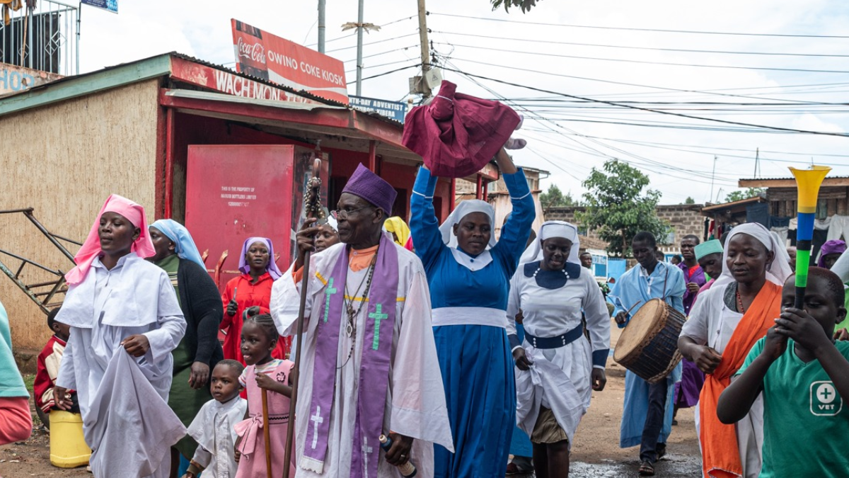 Ritüel yalnızca kilise içinde değil, Kibera’nın dar sokaklarında da sürdürülüyor. Bebeği taşıyan cemaat üyesine diğer kilise mensupları dans ederek ve ilahiler söyleyerek eşlik ediyor. Böylece bebek, hem dini topluluğa hem de mahalle halkına tanıtılmış oluyor.
