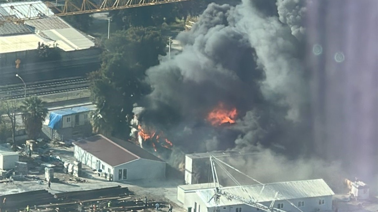 İzmir Bayraklı’da şantiye yangını: Gökyüzünü dumanlar kapladı