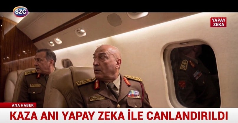 Uçakta Libya Genel Kurmay Başkanı ile birlikte bulunan 8 kişi hayatını kaybetti. Resmi açıklamalar ışığında uçağın düştüğü anlar yapay zeka ile canlandırıldı.