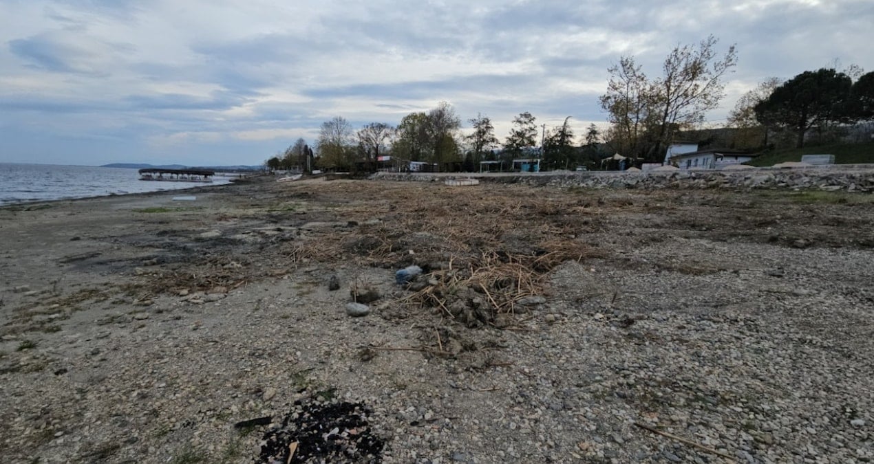 Sapanca ilçesindeki Sapanca Gölü’nde kuraklık nedeniyle su seviyesi azaldı.